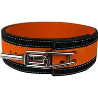 13mm Orange & Black Lever Belt. 10cm wide and 13mm thick, this is a quality lever action belt. With a strong leather core and a suede covering on both the inside and out, this belt is quality all the way. These belts are built to the highest specifications using only the best raw materials. This belt will give you all the stability you need on all your big lifts.